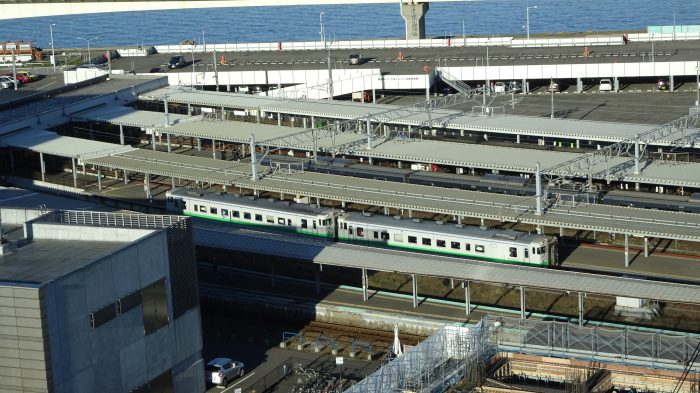 そしてもう片方の窓からは函館駅を出発したり到着する列車を見ることができます。