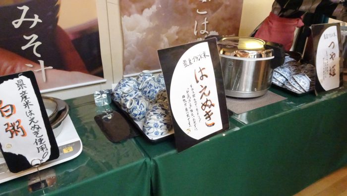 ごはんは「はえぬき」か「つや姫」を選ぶことができます。また、半分づつよそって食べ比べも可能。