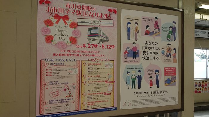 駅に降りると駅名表が「市川ママ」。