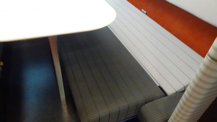 リクライニングはこの角度。そして車窓を楽しめるように座席が少しだけ外側に向いております。