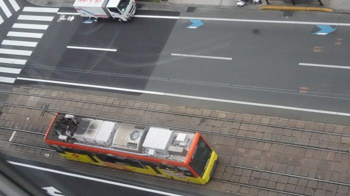 写真でみてわかる通り、路面電車が目の前の通りを走っております。
