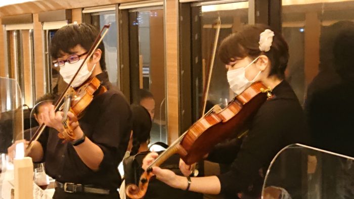 また、途中ではバイオリンの演奏もあるのですが、マスク着用とパネル設置という徹底ぶり。