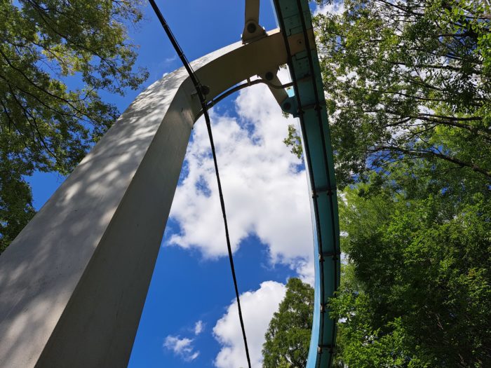 ちょうど「ぱんだのもり」の真上を通る形になります。休止のまま廃止になるとのことで、この軌道にモノレールが走る可能性は限りなく低いですが、さよなら運転といった企画があるかもしれませんね。(ただ車両老朽化も休止の一因ですのでそれも難しいかもしれません)