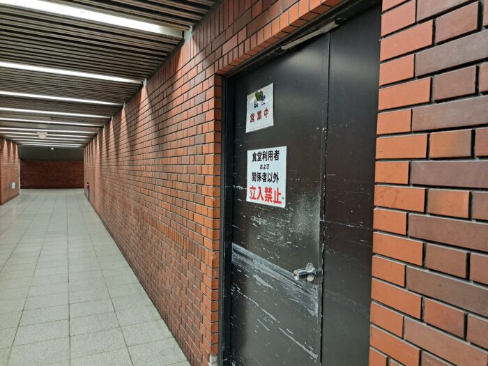 こちらが難波給食場のドア。初めて利用するにはちょっとハードルが高い扉ですが、