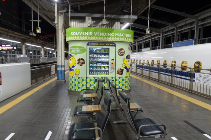山陽新幹線岡山駅のホームはのぞみ停車駅だけあって、売店も充実。