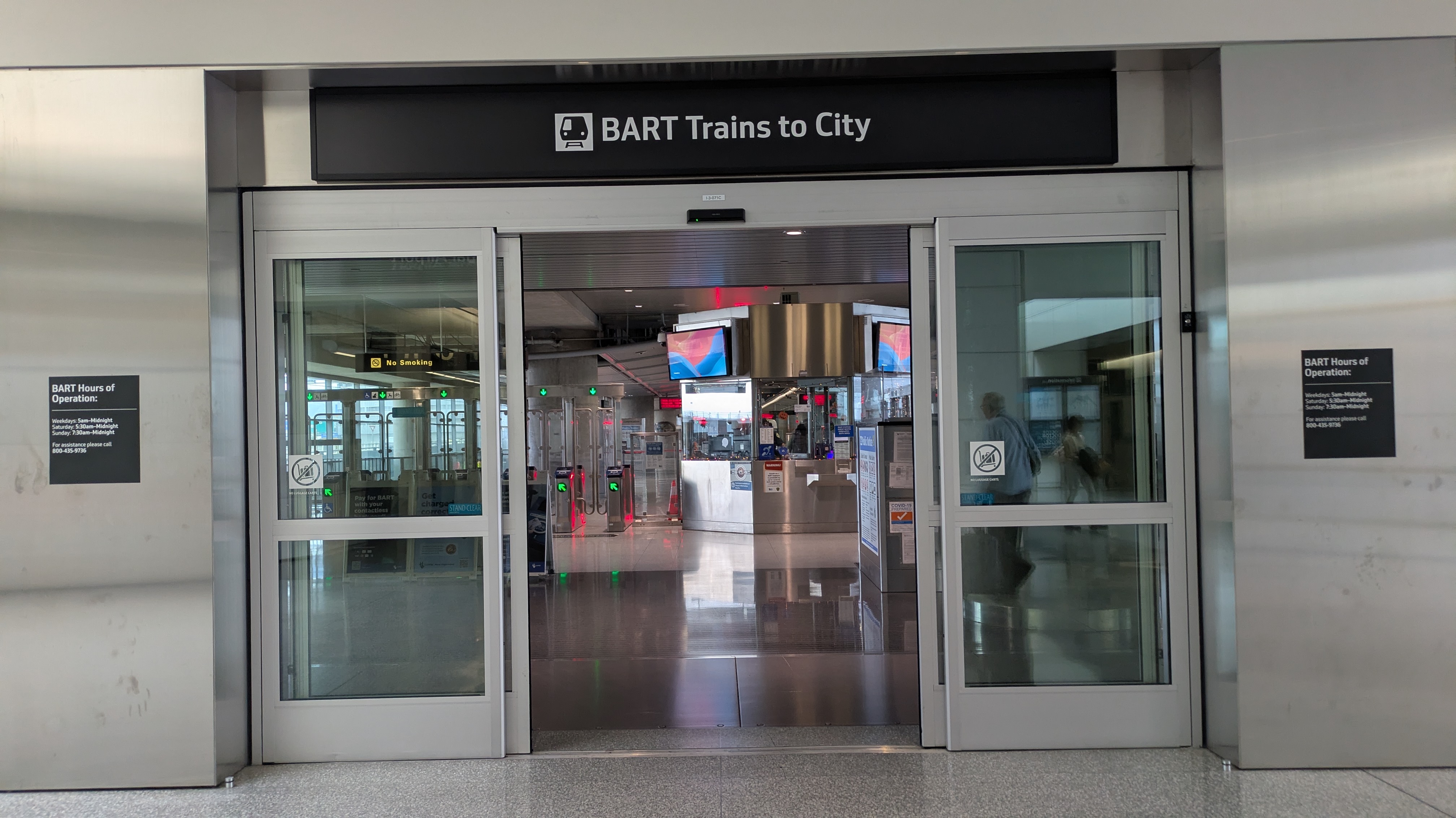 サンフランシスコ国際空港から市内へ走っている電車は、BART(バート)という高速鉄道です。