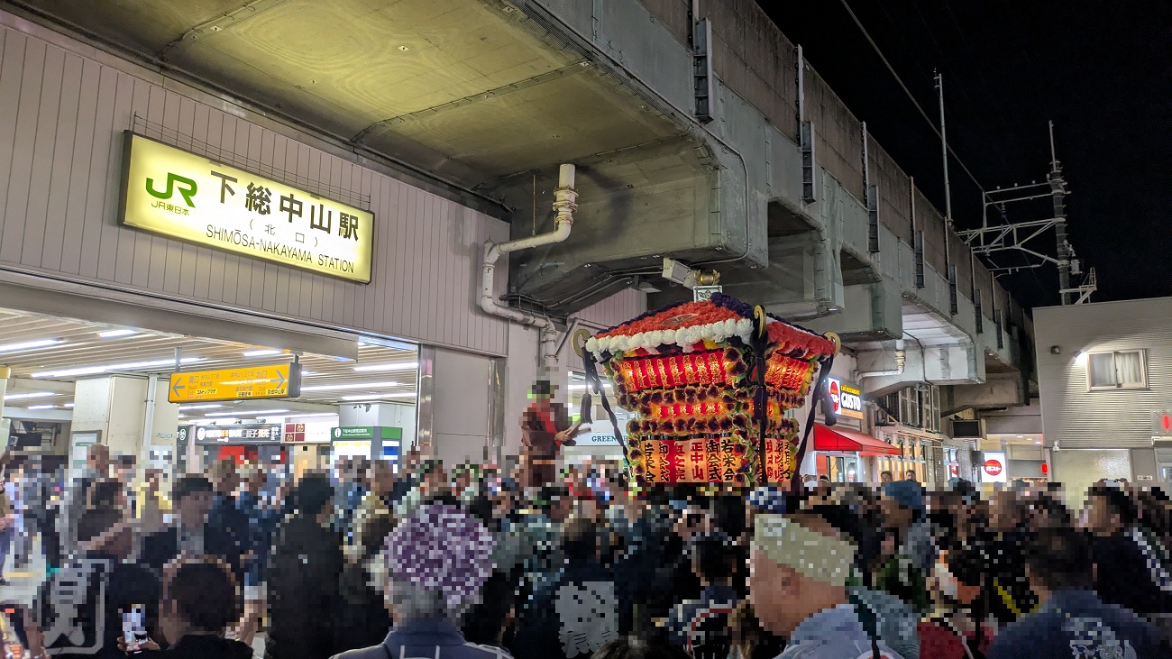 下総中山駅では駅構内ぎりぎりまでお神輿が練り歩き、盛り上がりもピークになります!