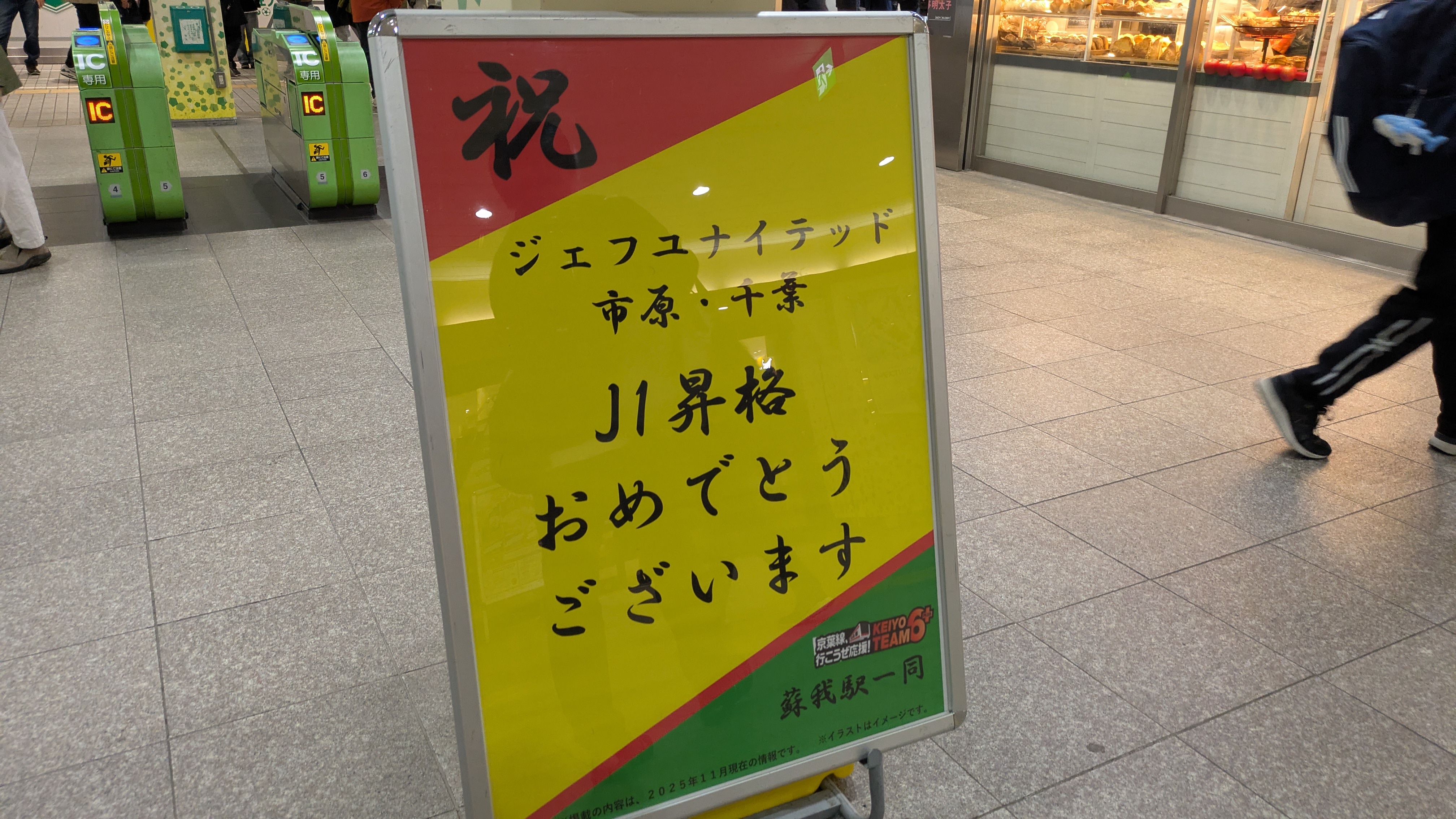 蘇我駅はジェフ千葉のホームグラウンド、「フクダ電子アリーナ」の最寄り駅という事もあり、駅の構内はジェフ千葉一色であります。