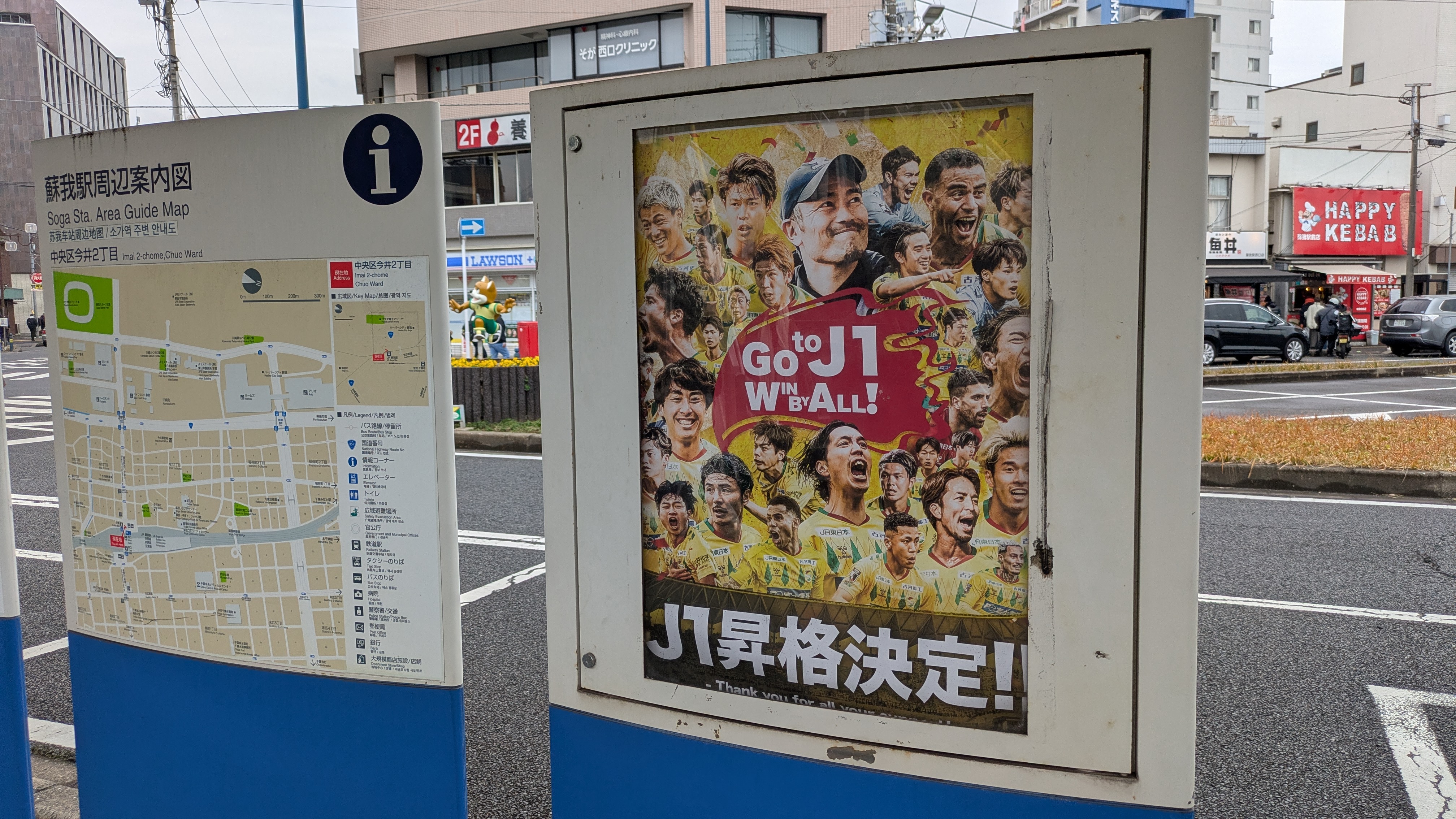今年は17年振りにJ1に復帰したとのことで、あらためて駅を見に行ってきました。