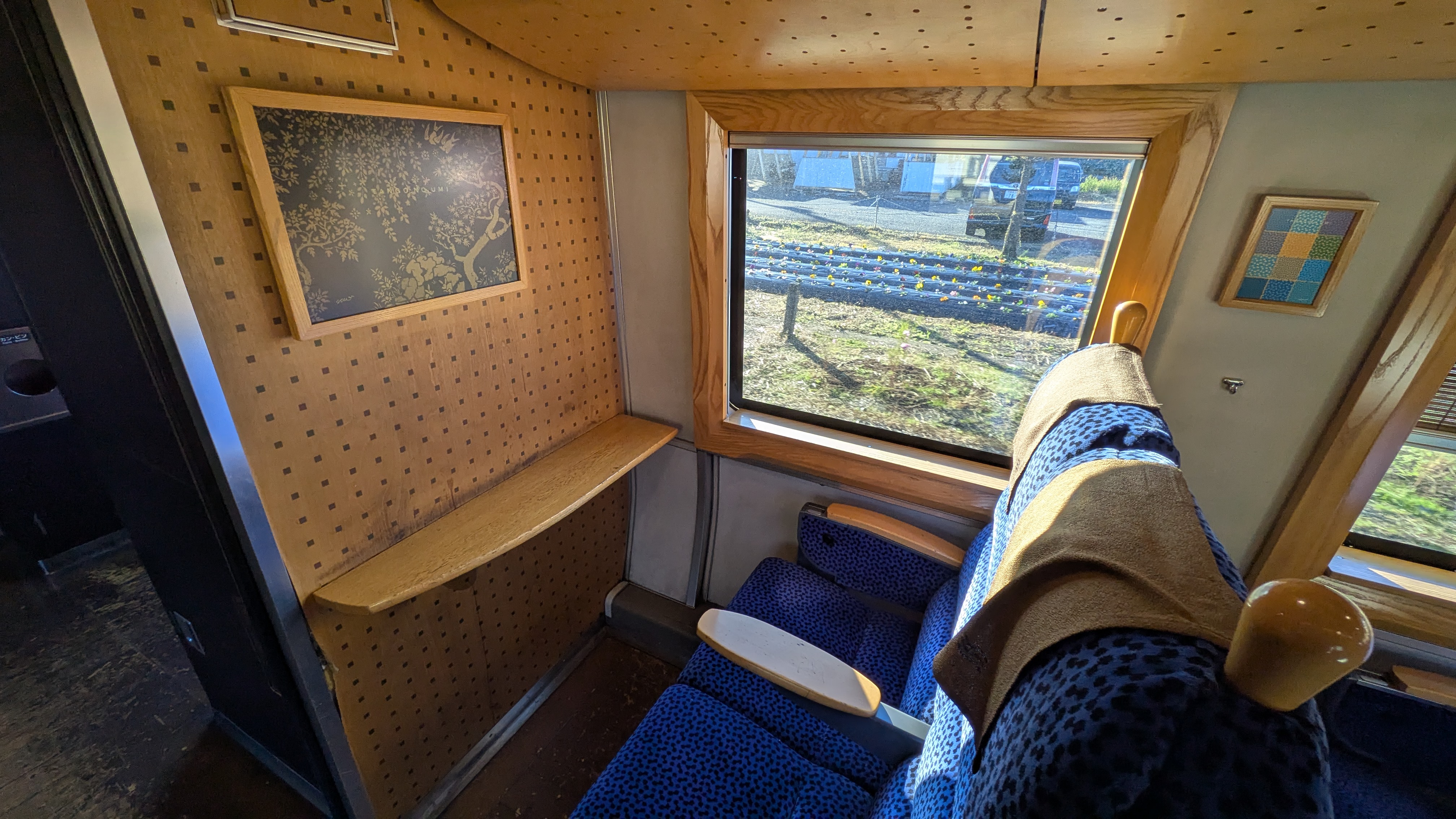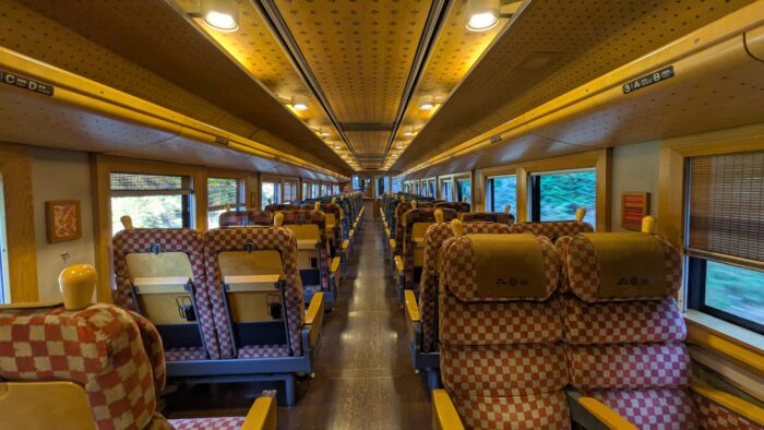 デザインはご存じ水戸岡鋭治氏。車内は2列+2列。