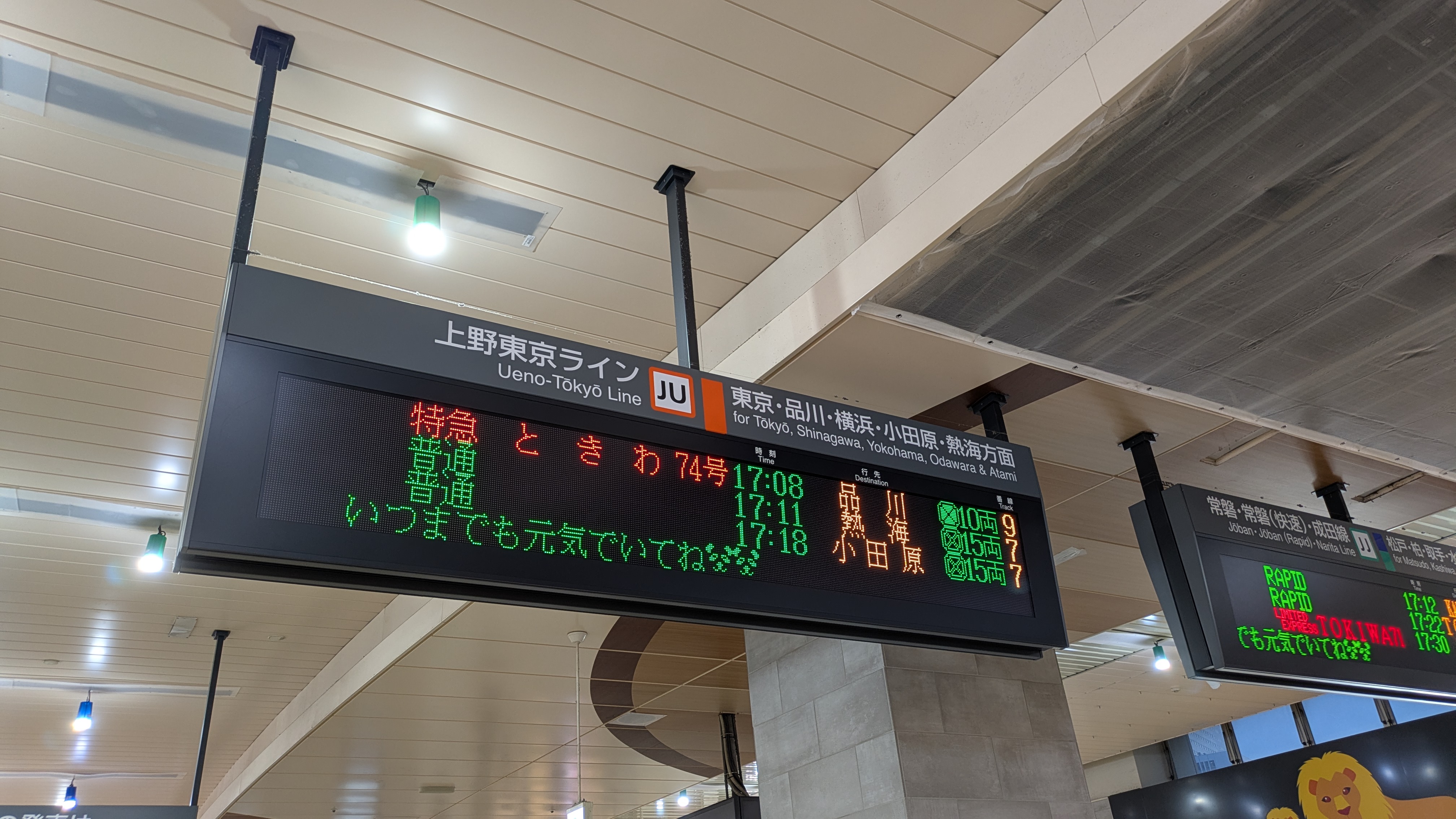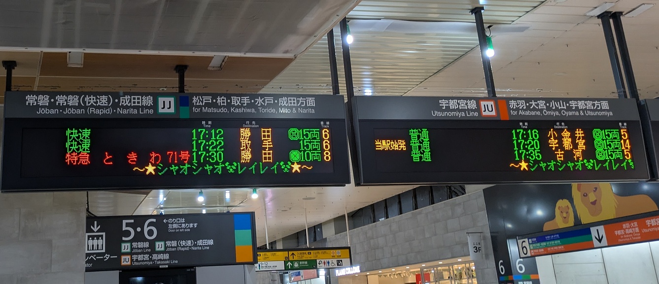 上野駅の案内板では感謝の言葉が掲示されていました。